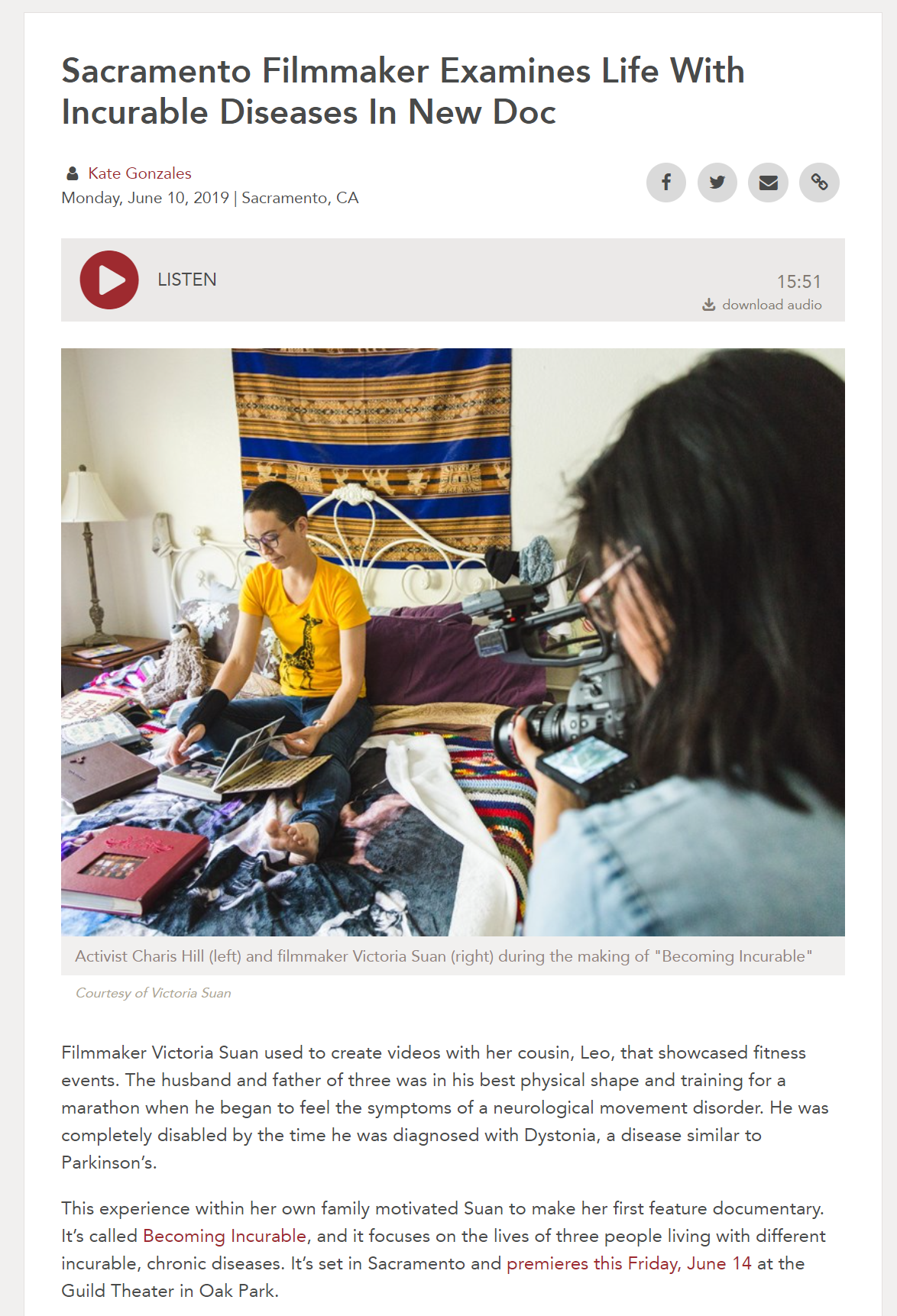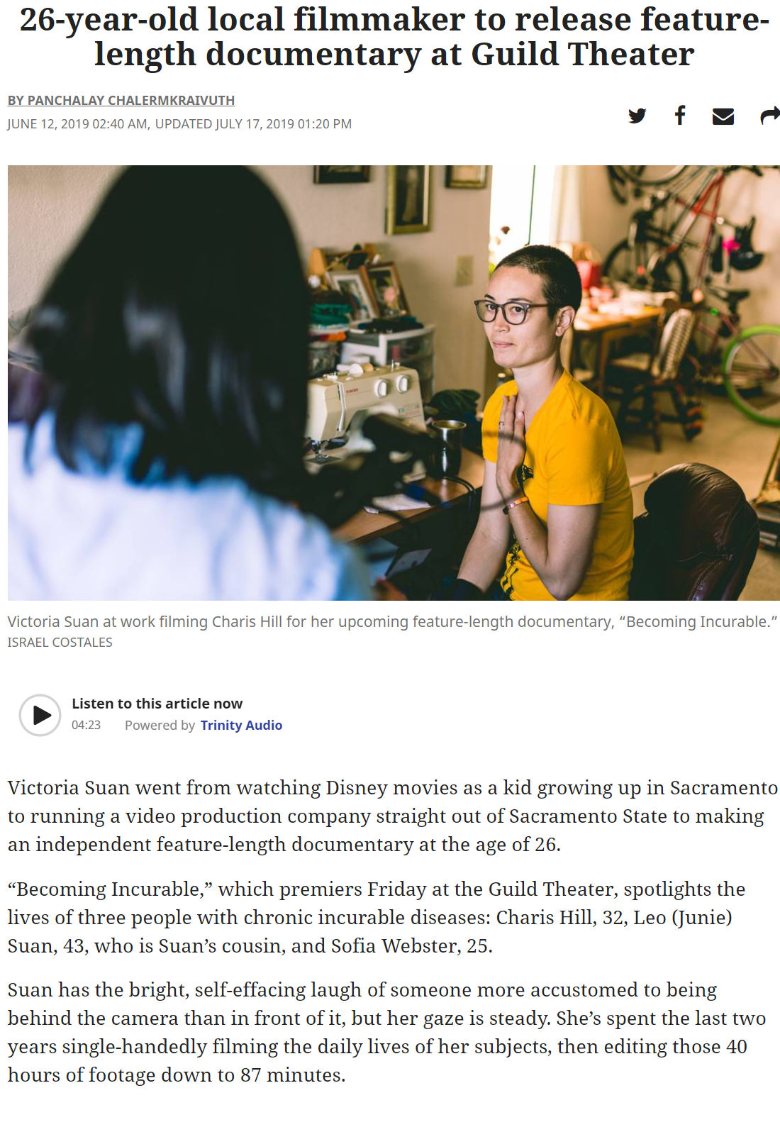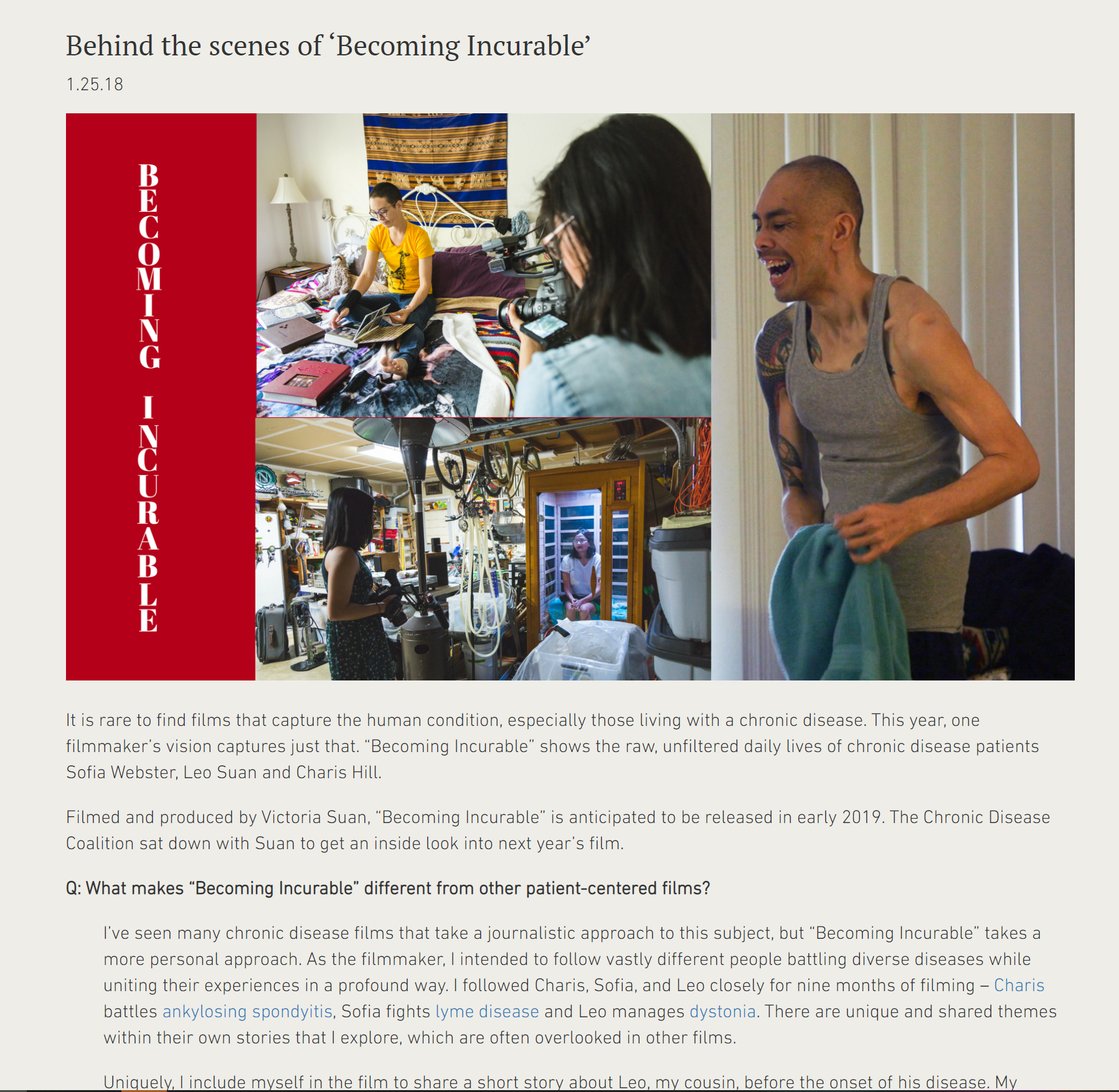 One of her biggest accomplishments is an award-winning feature film about chronic illness known as Becoming Incurable, of which she directed, produced, and edited.